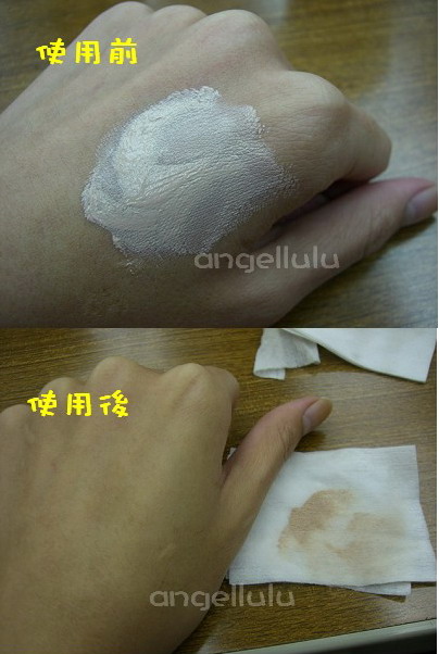 下圖就是以BB霜當作試驗品,用化妝棉抹上潔膚慕斯後再抹去的成果