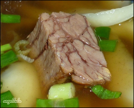 它的湯一點都不油膩,看起來顏色很重,但吃起來其實蠻清爽的,