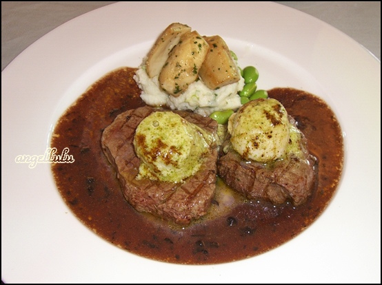 嫩煎紐西蘭菲力牛排襯干貝焗榛果奶油-860元