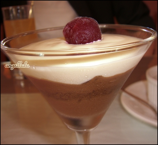 上層的香草幕斯好綿密滑,上面冷凍野莓一起入口,